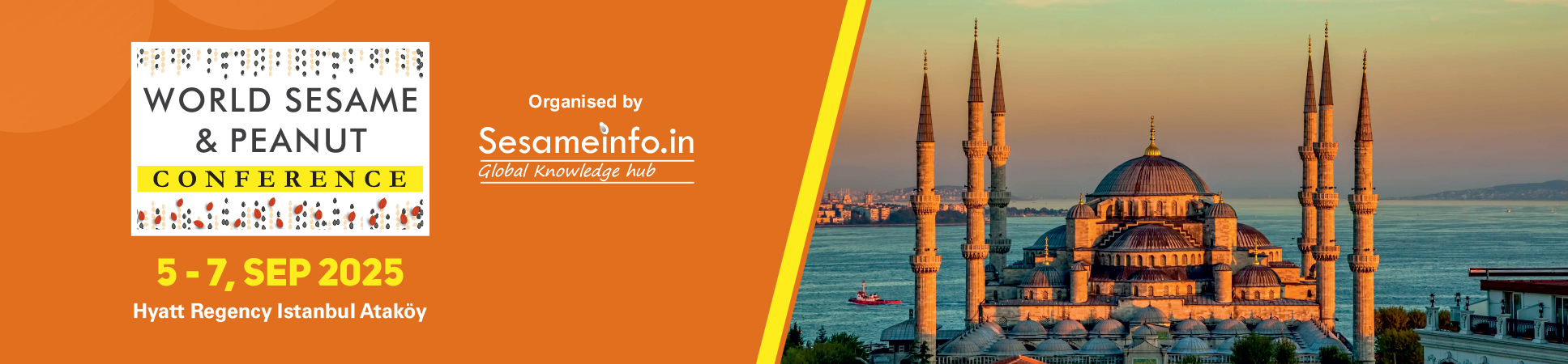 World Sesame & Peanut Conference 2025 (WSPC2025), organised by sesameinfo.in, will be held in Hyatt Regency, Istanbul, Turkey between 5 and 7, September 2025.