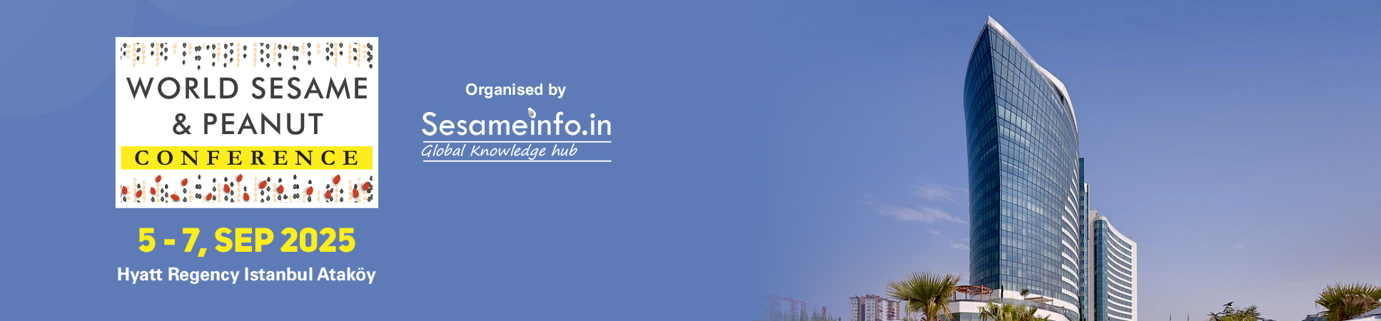 World Sesame & Peanut Conference 2025 (WSPC2025), organised by sesameinfo.in, will be held in Hyatt Regency, Istanbul, Turkey between 5 and 7, September 2025.